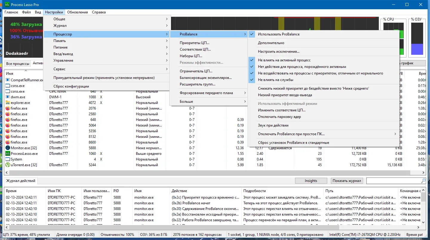 - Программа внедряет технологию ProBalance, которая динамически регулирует приоритеты процессов, предотвращая замедление системы.