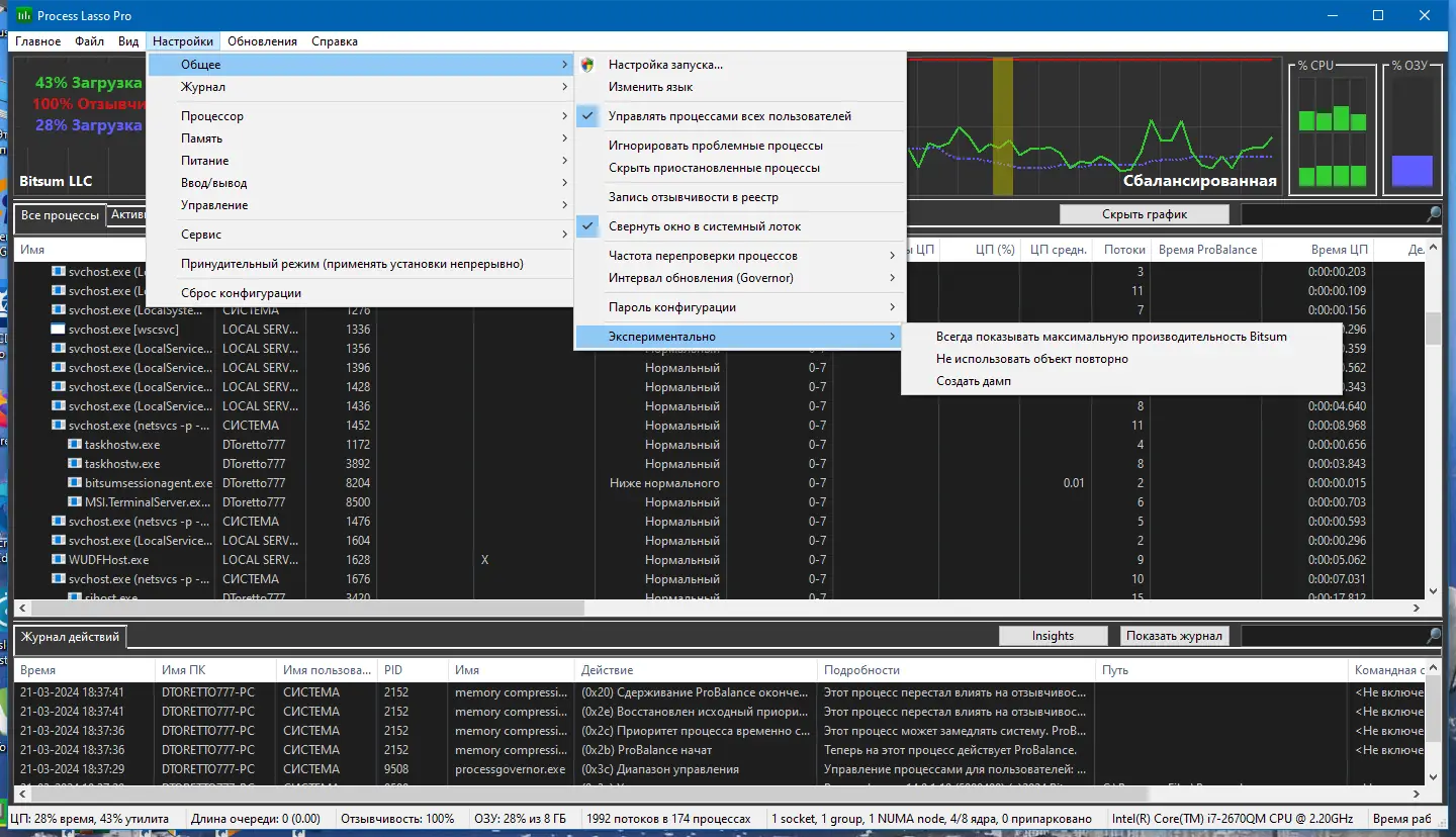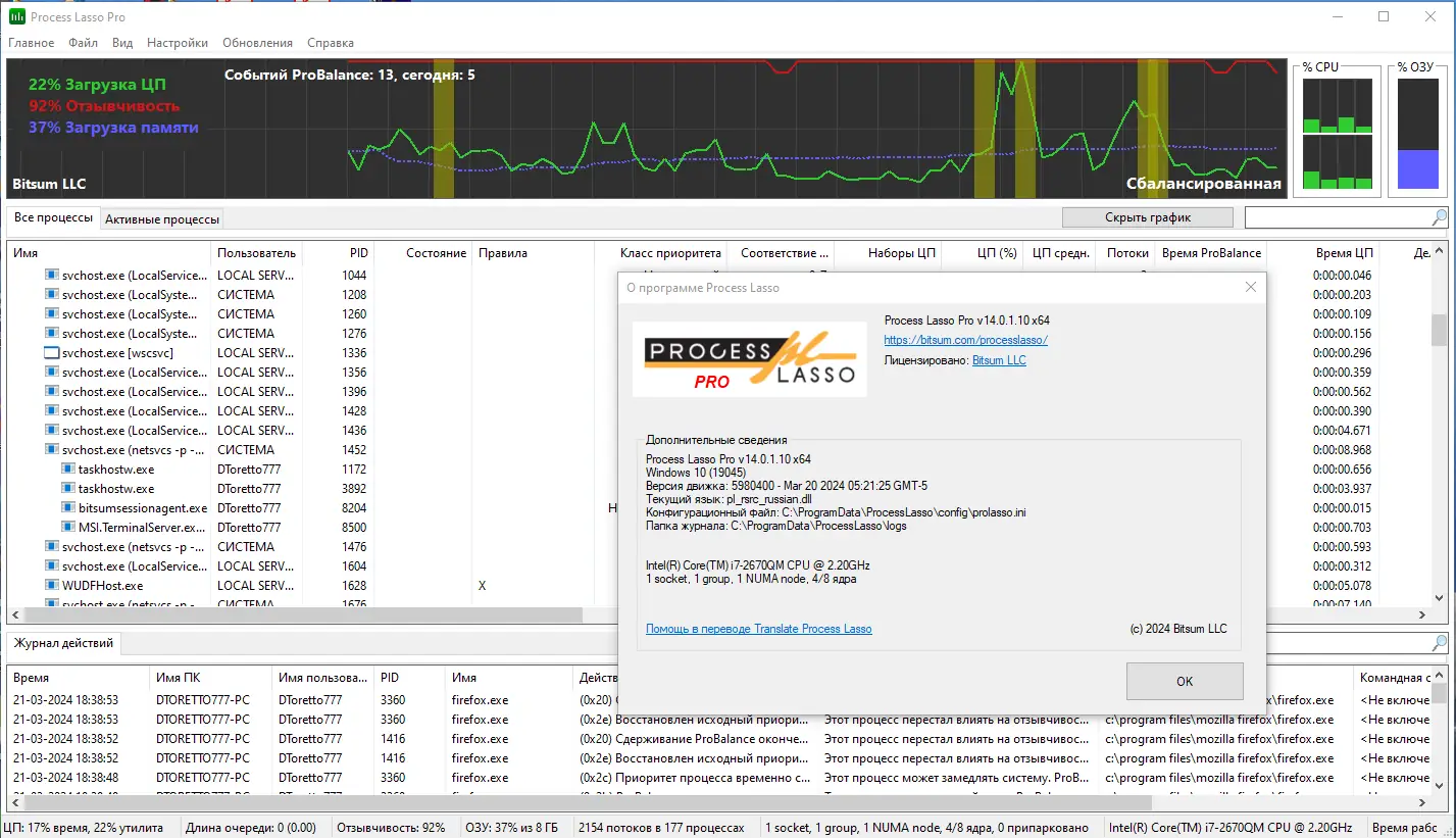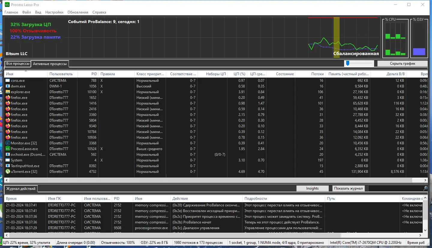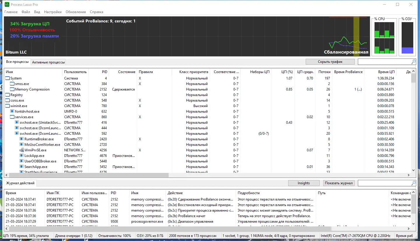 Process Lasso представляет собой инструмент для тонкой настройки поведения запущенных приложений и фоновых служб. Вместо того чтобы полностью останавливать процессы, программа умело регулирует их приоритет, освобождая ресурсы для активных задач. Это особенно полезно при одновременной работе с несколькими приложениями, когда система начинает тормозить. Утилита работает в фоновом режиме и не требует постоянного вмешательства пользователя.
