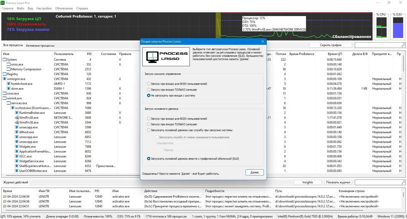 Process Lasso способна работать в фоновом режиме, не требуя постоянного открытия графического интерфейса, что делает её удобной для повседневного использования.