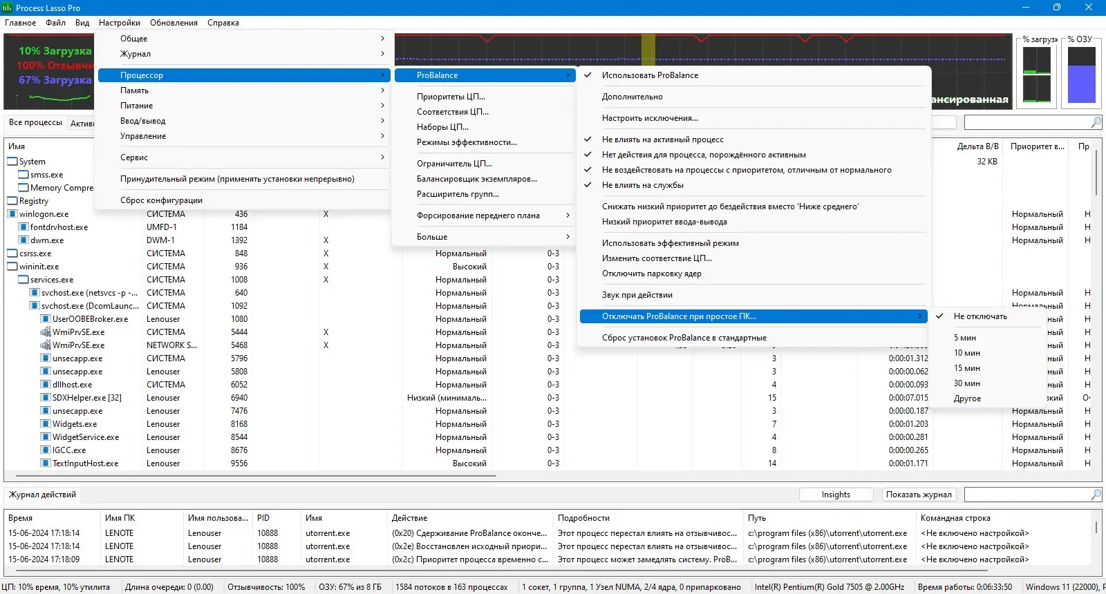 Технология ProBalance адаптирует поведение системы под текущую нагрузку, обеспечивая максимальную отзывчивость без вмешательства пользователя.