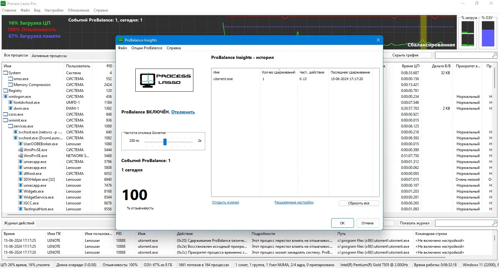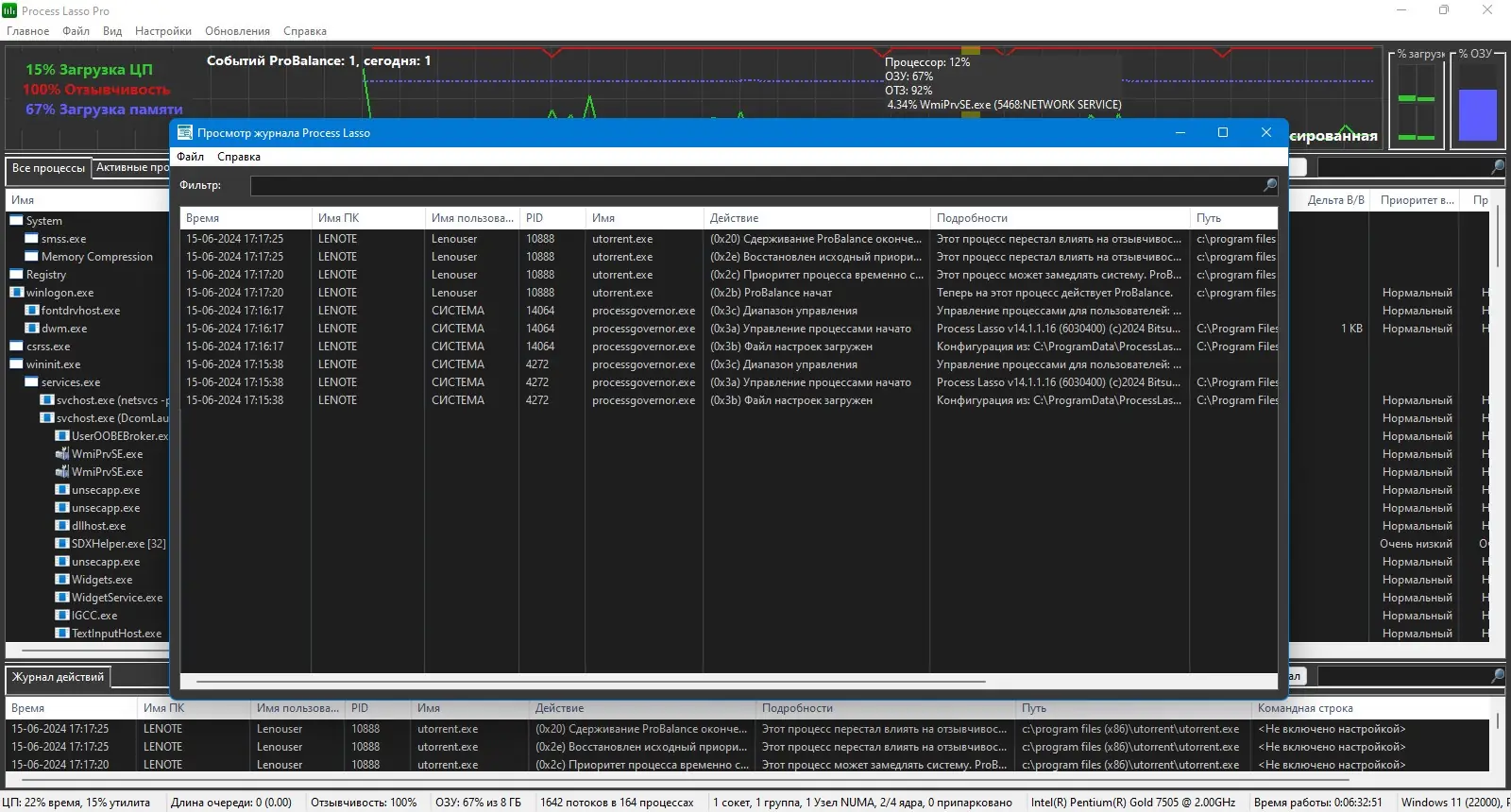Process Lasso — это системная утилита, предназначенная для управления процессами в операционной системе Windows, позволяющая улучшить отзывчивость и общую производительность компьютера за счёт автоматической корректировки приоритетов запущенных задач. Программа эффективно предотвращает перегрузку центрального процессора, контролируя поведение приложений и перераспределяя системные ресурсы. Благодаря технологии ProBalance, система остаётся стабильной даже при высокой нагрузке.