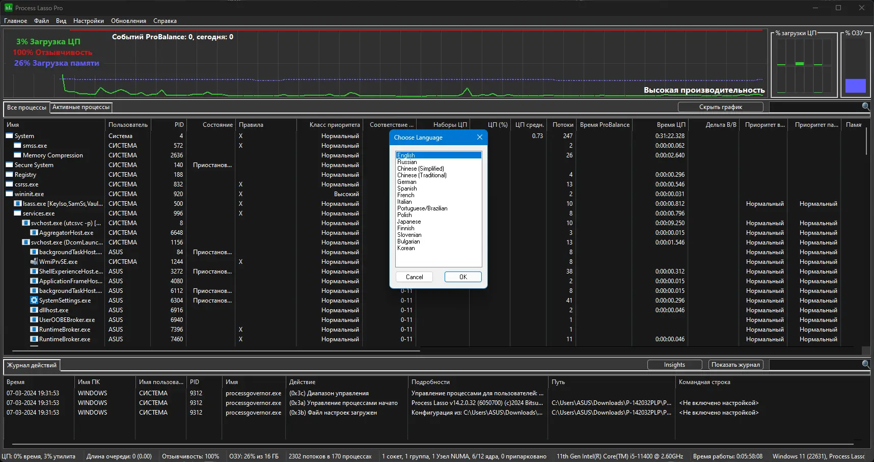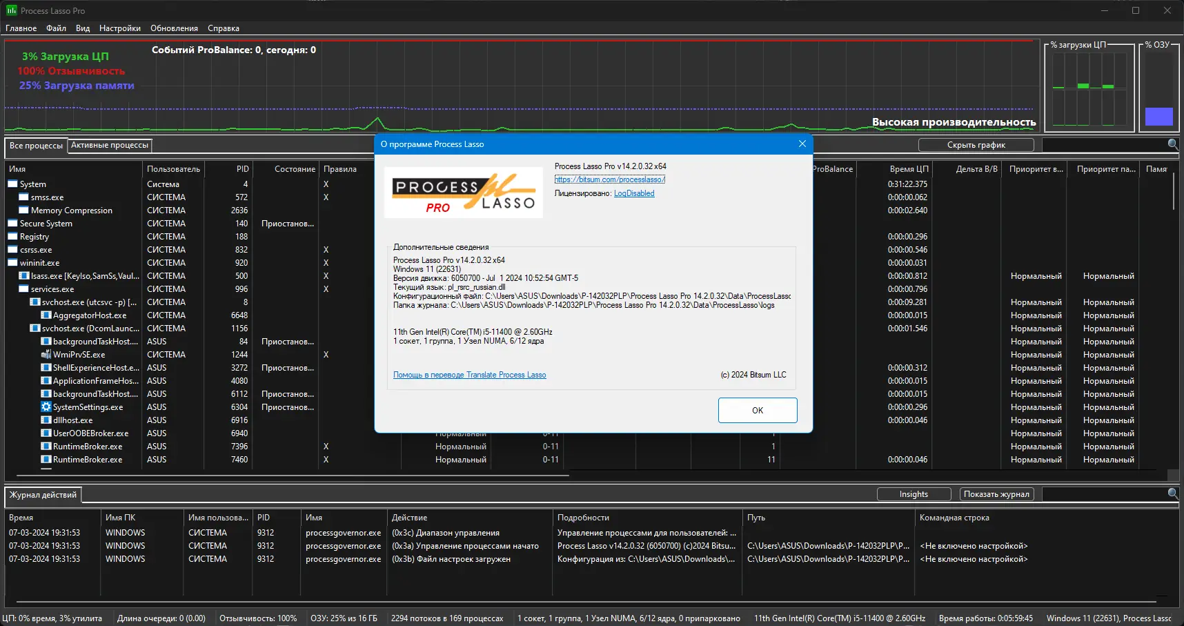 Process Lasso — системная утилита, предназначенная для управления процессами в операционной системе Windows. Программа автоматически регулирует приоритеты запущенных приложений, предотвращая перегрузку процессора и обеспечивая стабильную работу системы даже при высокой нагрузке. Благодаря технологии ProBalance, она эффективно повышает отзывчивость компьютера, не требуя вмешательства пользователя.