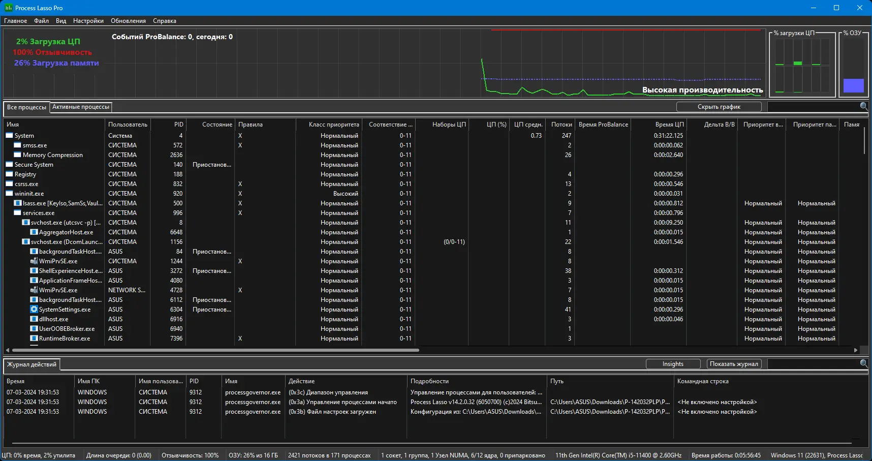 Технология ProBalance обеспечивает плавное перераспределение ресурсов, не допуская блокировок и лагов даже при пиковой нагрузке.