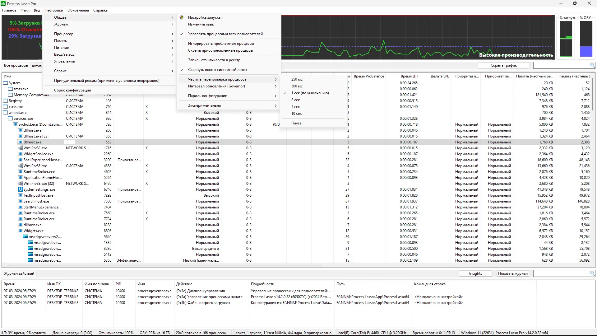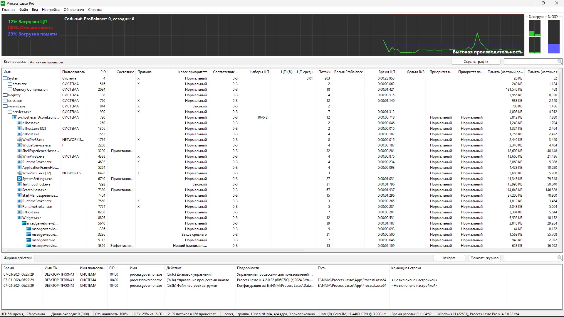 - Применение технологии ProBalance для автоматического балансирования приоритетов процессов.