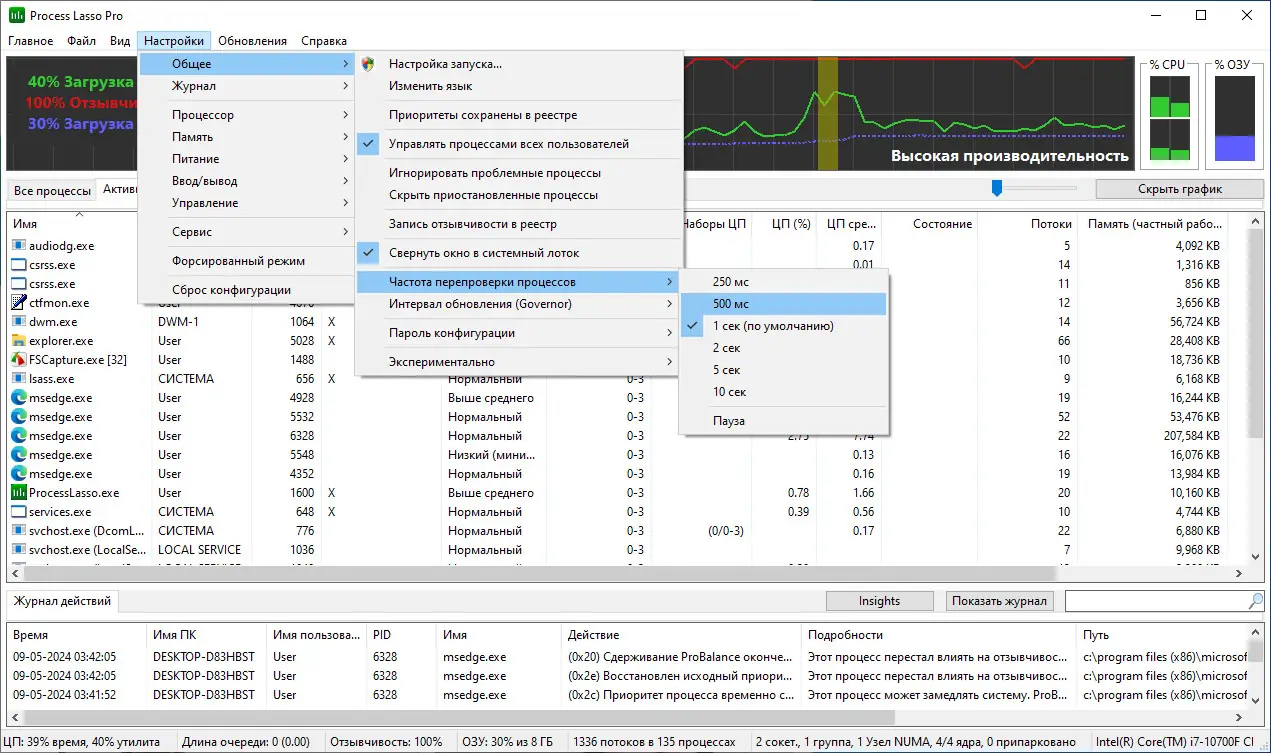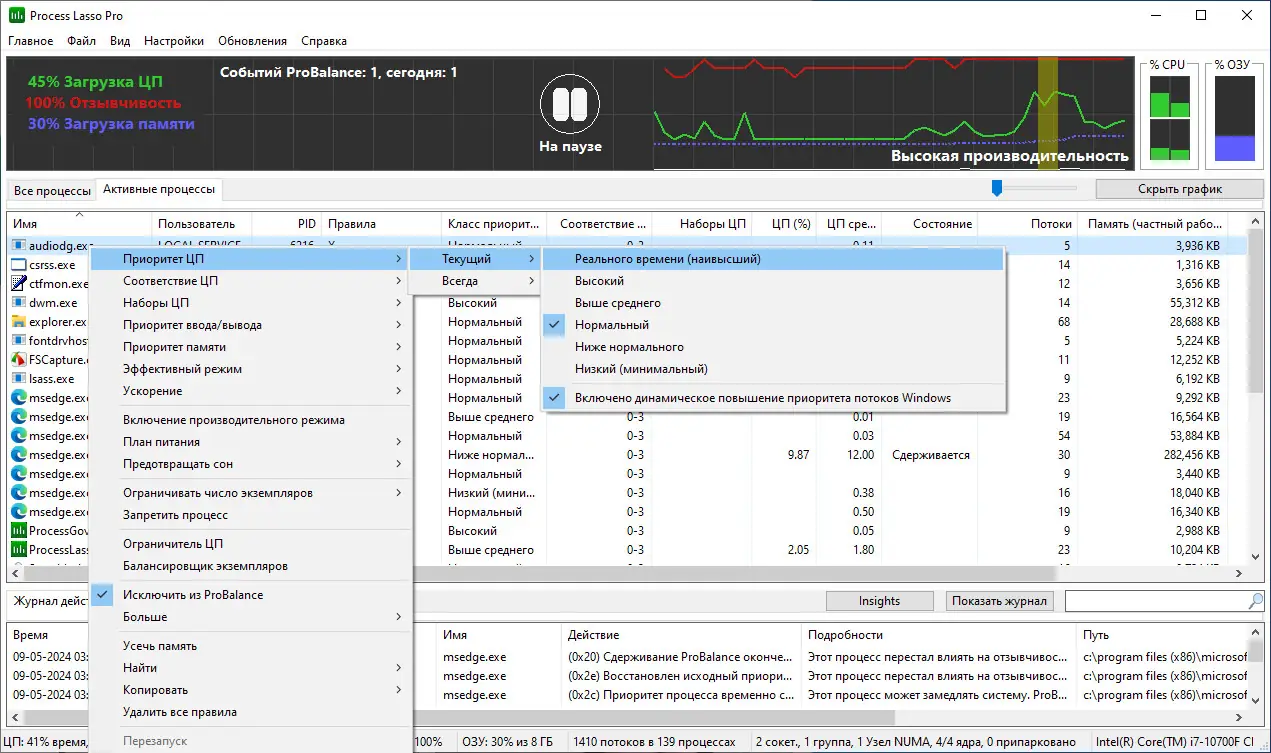 Работа с Process Lasso