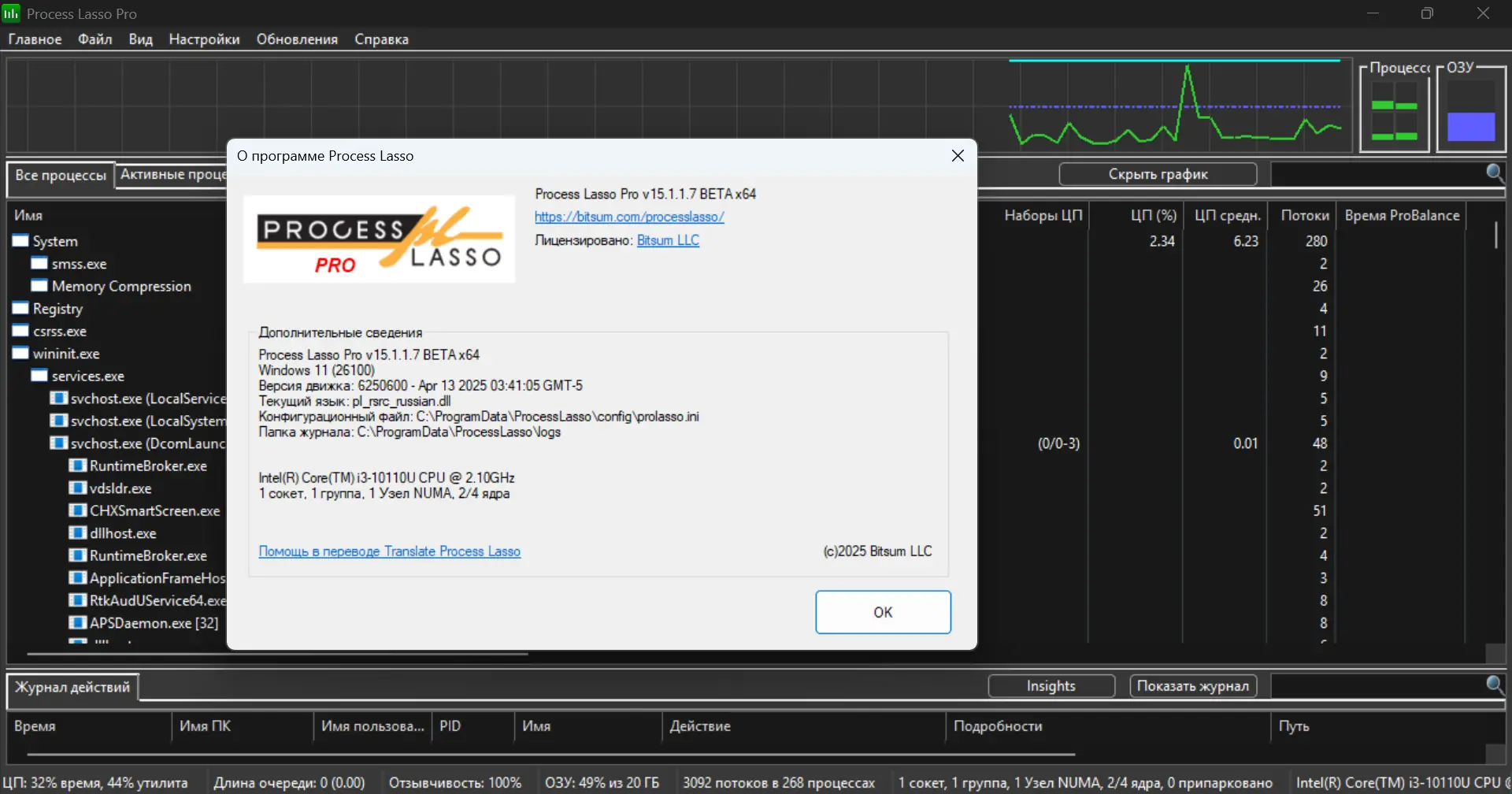 Программа предназначена для тонкой настройки производительности компьютера через контроль активных процессов в реальном времени. В отличие от стандартного диспетчера задач, Process Lasso не просто отображает информацию, а активно вмешивается в работу системы, оптимизируя распределение ресурсов. Она способна выявлять приложения, которые чрезмерно нагружают CPU, и снижать их приоритет, не завершая принудительно, что сохраняет целостность выполняемых операций.