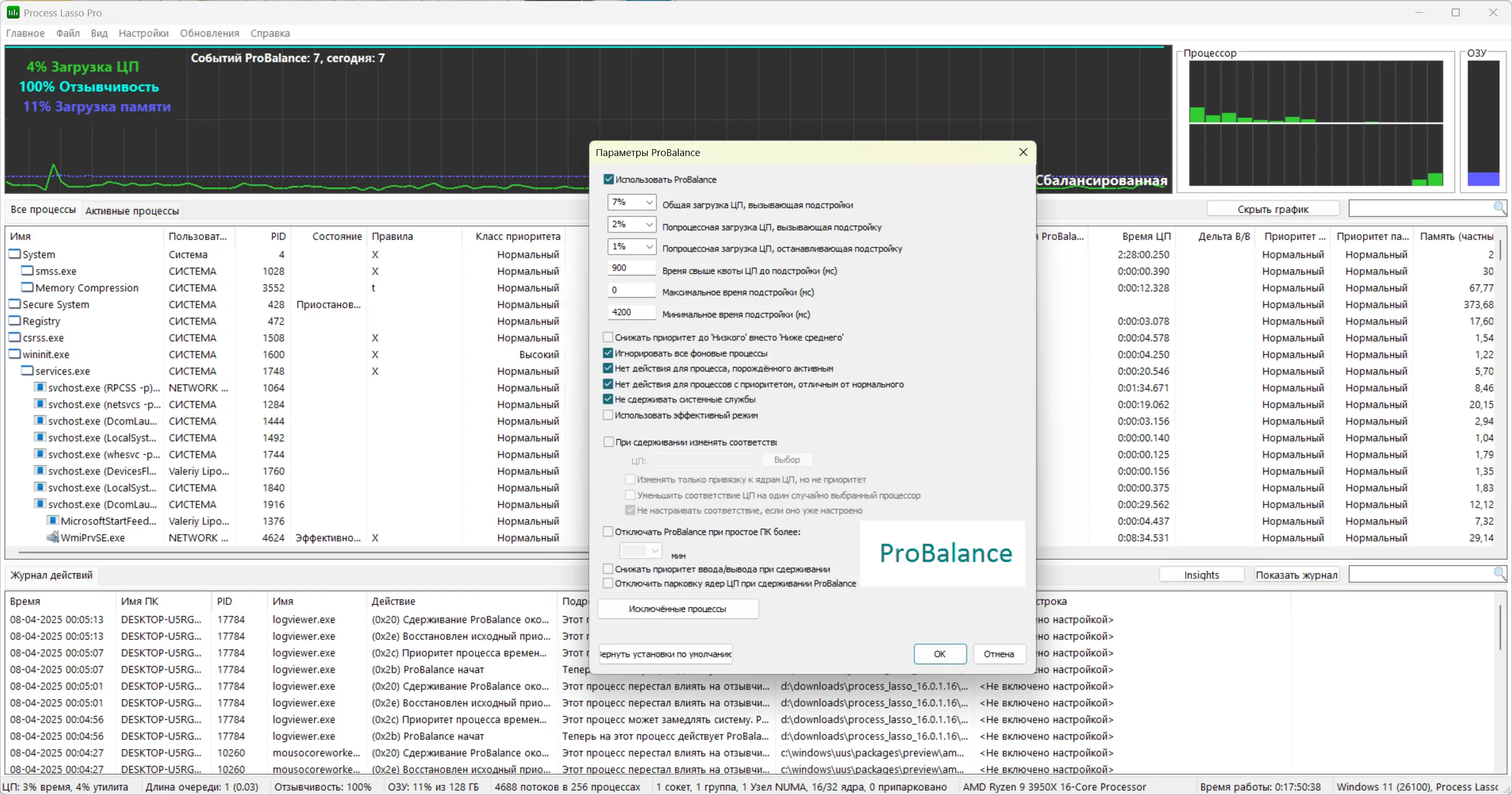 Технология ProBalance обеспечивает стабильную работу системы, даже если отдельные процессы начинают потреблять слишком много ресурсов процессора.