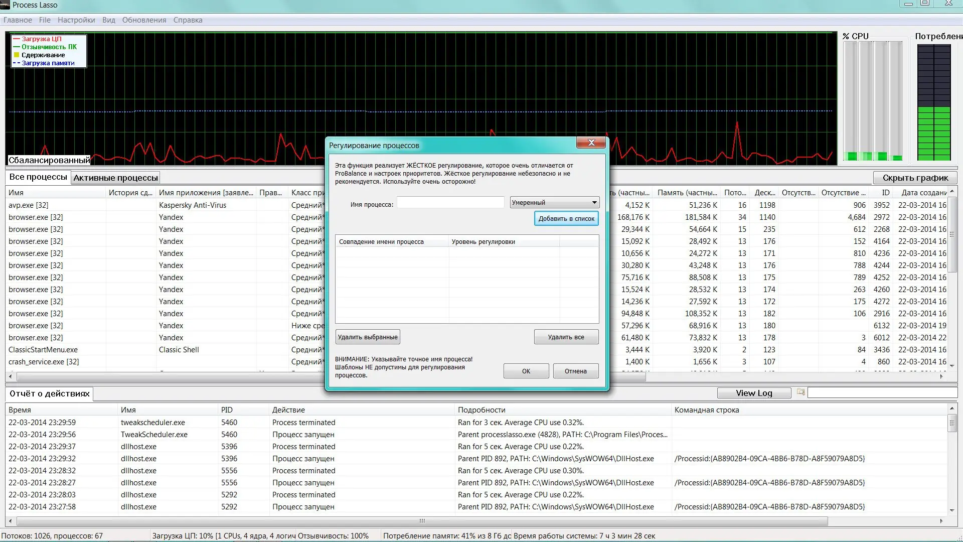 Работа с Process Lasso