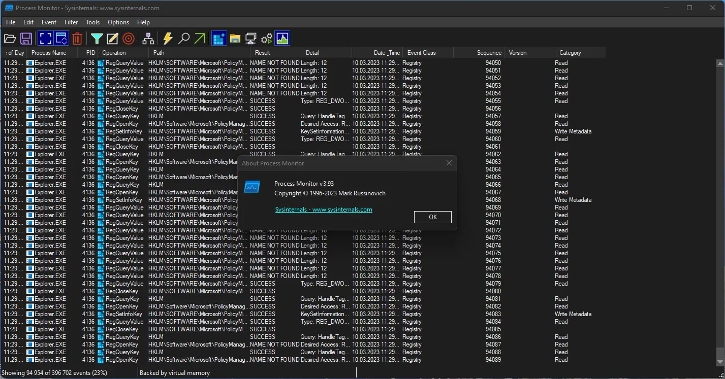 Process Monitor разработан командой Sysinternals и представляет собой продвинутый инструмент диагностики, предназначенный для анализа поведения программ и операционной среды. Программа отслеживает операции ввода-вывода, взаимодействие с ключами реестра, создание и завершение процессов, а также загрузку компонентов ядра. Благодаря глубокой интеграции с архитектурой windows, она способна фиксировать события на уровне драйверов, что делает её незаменимой при отладке и исследовании системных сбоев. Утилита поддерживает режим непрерывного логирования и позволяет анализировать поведение системы как в текущем, так и в историческом контексте.