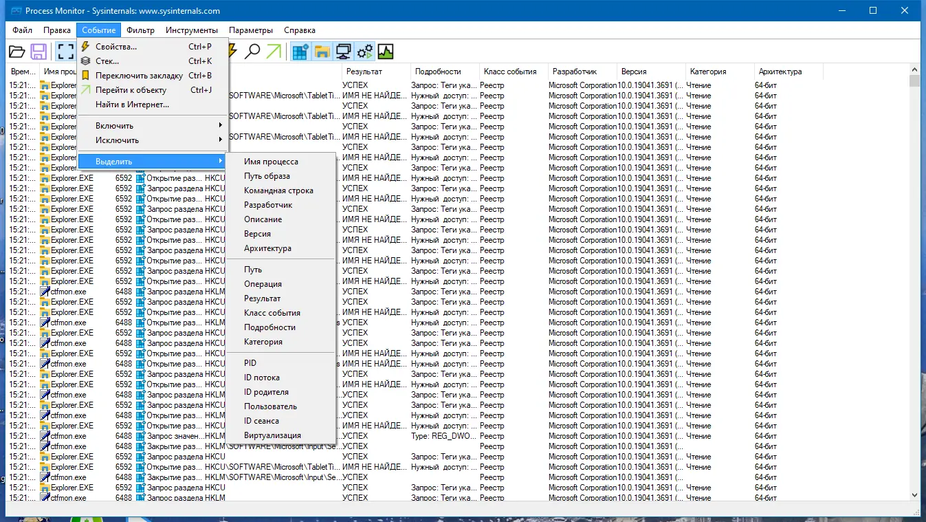Работа с Process Monitor