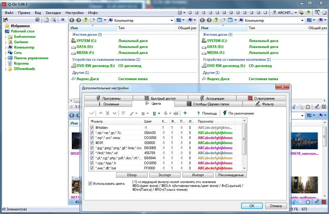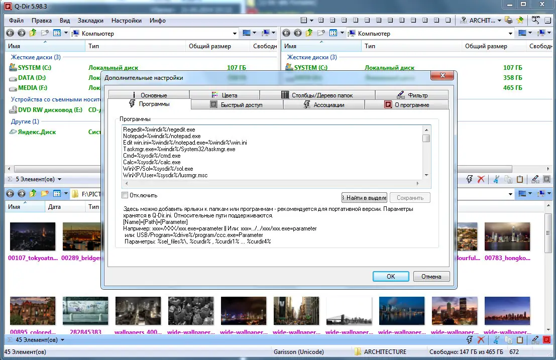 - Полноценное взаимодействие с буфером обмена, включая копирование и вставку между Q-Dir и другими проводниками