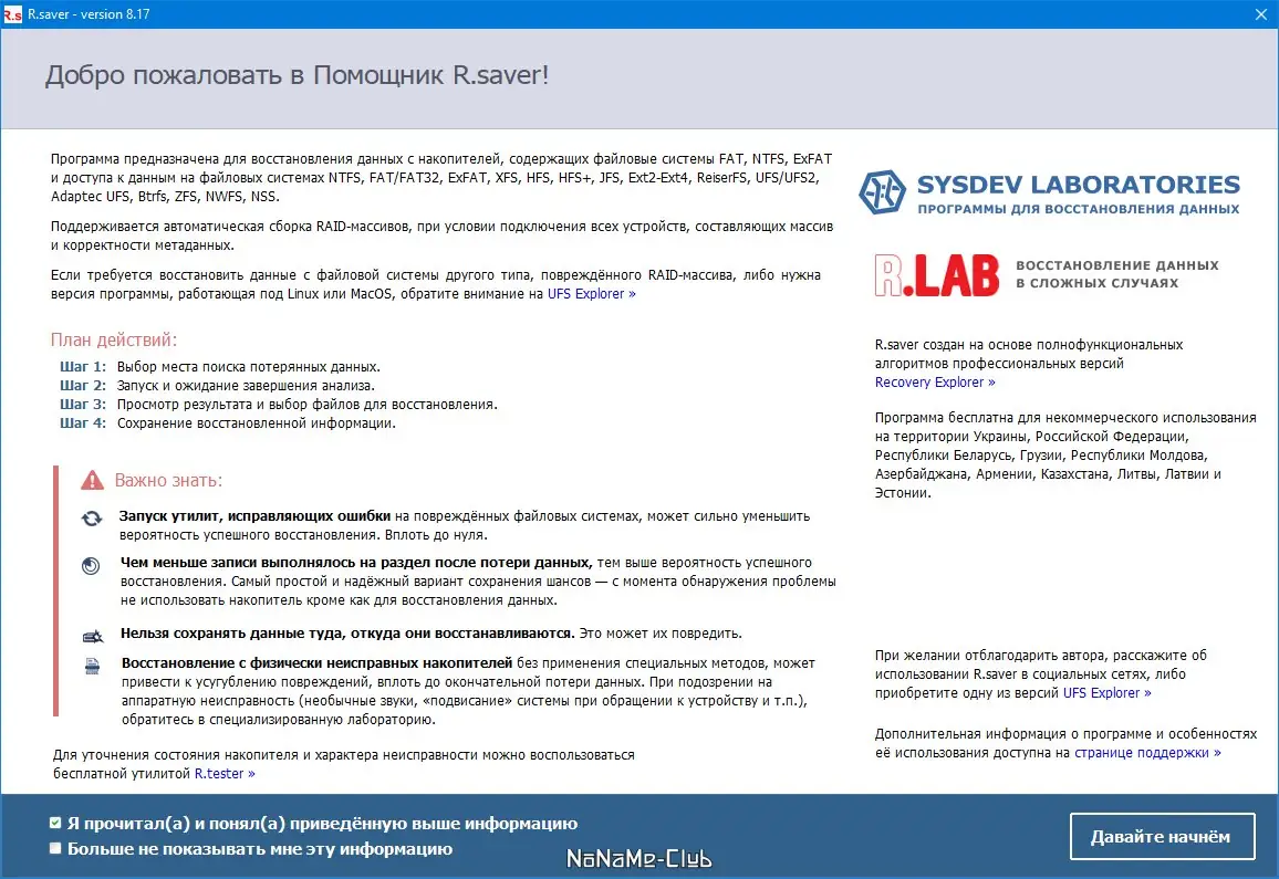 R.saver — это мощная утилита для восстановления данных, способная вернуть файлы после удаления, форматирования или повреждения файловой системы. Программа поддерживает широкий спектр файловых систем и работает без установки, обеспечивая быстрый доступ к утерянной информации на жестких дисках, флешках и других носителях.