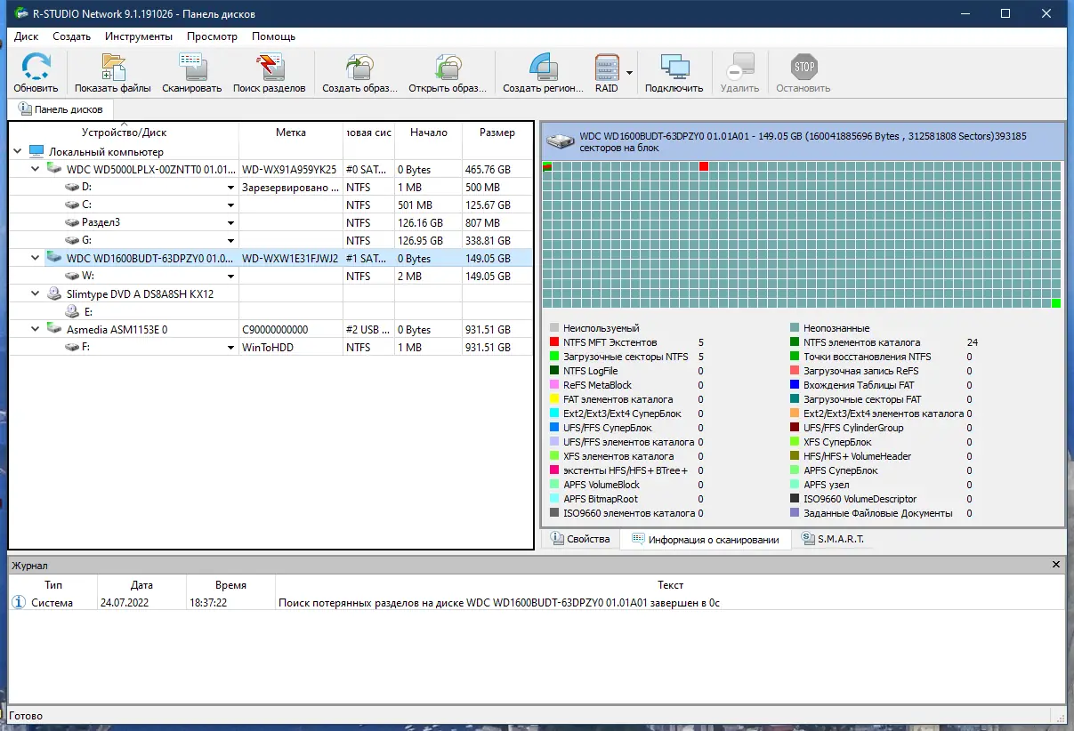 Мощная утилита для восстановления данных R-Studio обеспечивает высокоточное восстановление информации с повреждённых, отформатированных или зашифрованных носителей, включая сложные RAID-массивы и диски с разрушенной структурой разделов. Программа поддерживает широкий спектр файловых систем и позволяет извлекать данные даже после вирусных атак или сбоев питания.