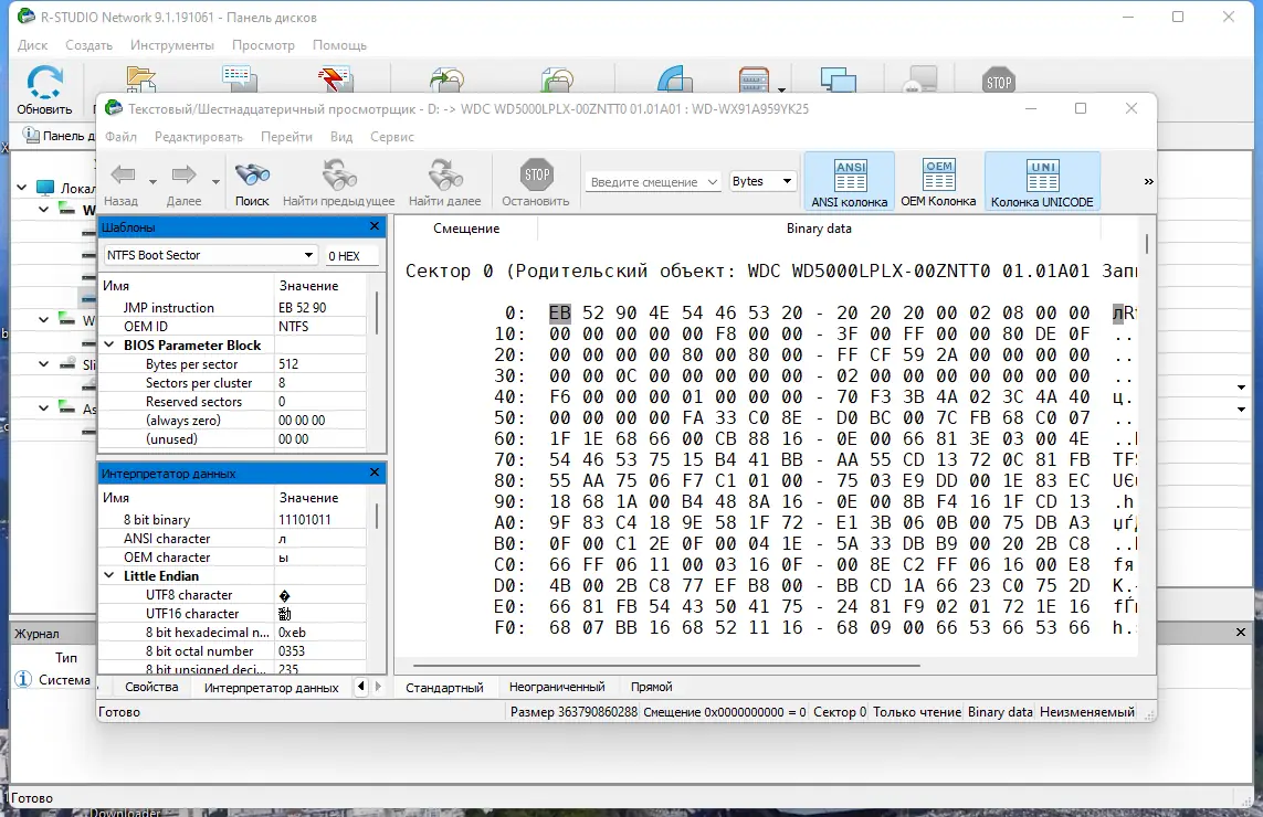 - Встроенный шестнадцатеричный редактор дает возможность просматривать и редактировать содержимое файлов и секторов на низком уровне, включая работу с атрибутами NTFS.
