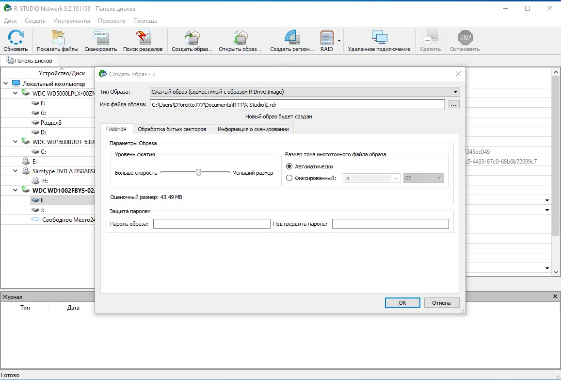 - Возможность создания сжатых образов дисков и портативная версия в одном пакете (R-Studio Technical Portable).