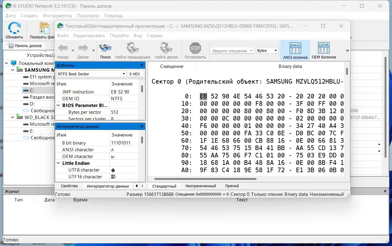 Использование R-Studio начинается с выбора физического диска или образа для анализа. Программа автоматически сканирует носитель, определяя существующие, удалённые и повреждённые разделы. Пользователь может применять фильтры для ускорения поиска нужных файлов, а также использовать диалоговое окно «Найти/Пометить» для групповой обработки. Встроенный шестнадцатеричный редактор позволяет просматривать и изменять содержимое файлов на низком уровне, включая признаки NTFS. Восстановленные данные можно сохранить на любой доступный диск, включая сетевые ресурсы. Для сложных случаев предусмотрена возможность многопроходного создания образа с подсчётом статистики.