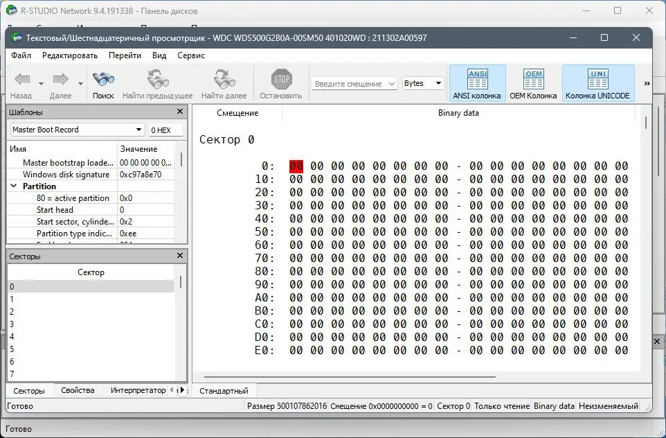 - Встроенный шестнадцатеричный редактор для просмотра и ручного редактирования содержимого диска и атрибутов файлов NTFS