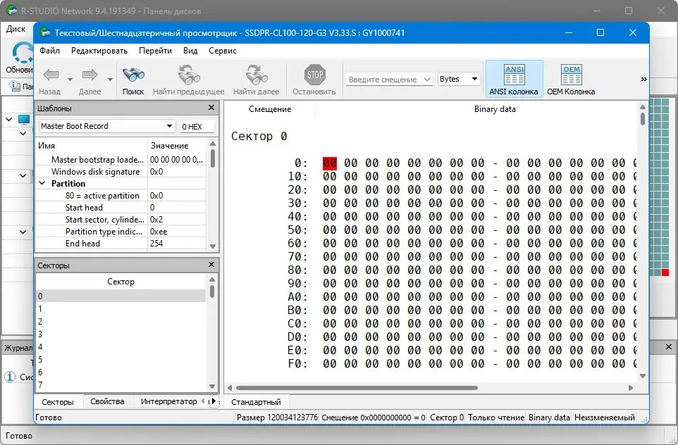 - Встроенная поддержка шестнадцатеричного редактора для просмотра и правки данных на уровне секторов