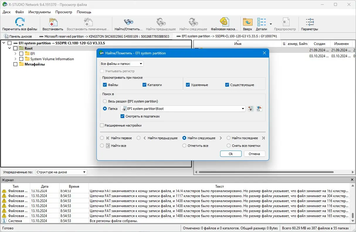- Расширенные функции поиска и фильтрации, включая диалоговое окно «Найти/Пометить» и массовое восстановление.