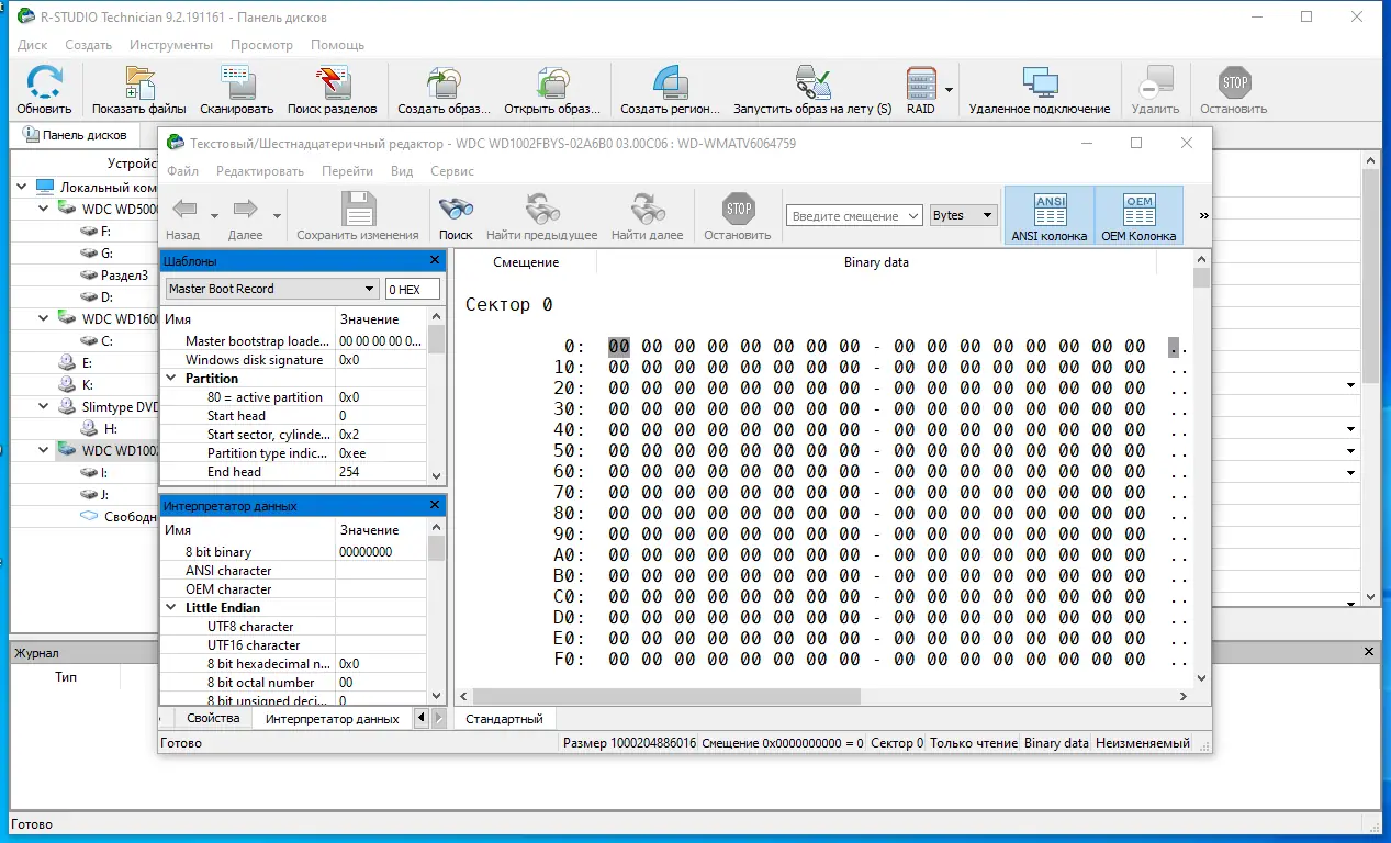 - Включает шестнадцатеричный редактор для просмотра и редактирования данных на уровне секторов.