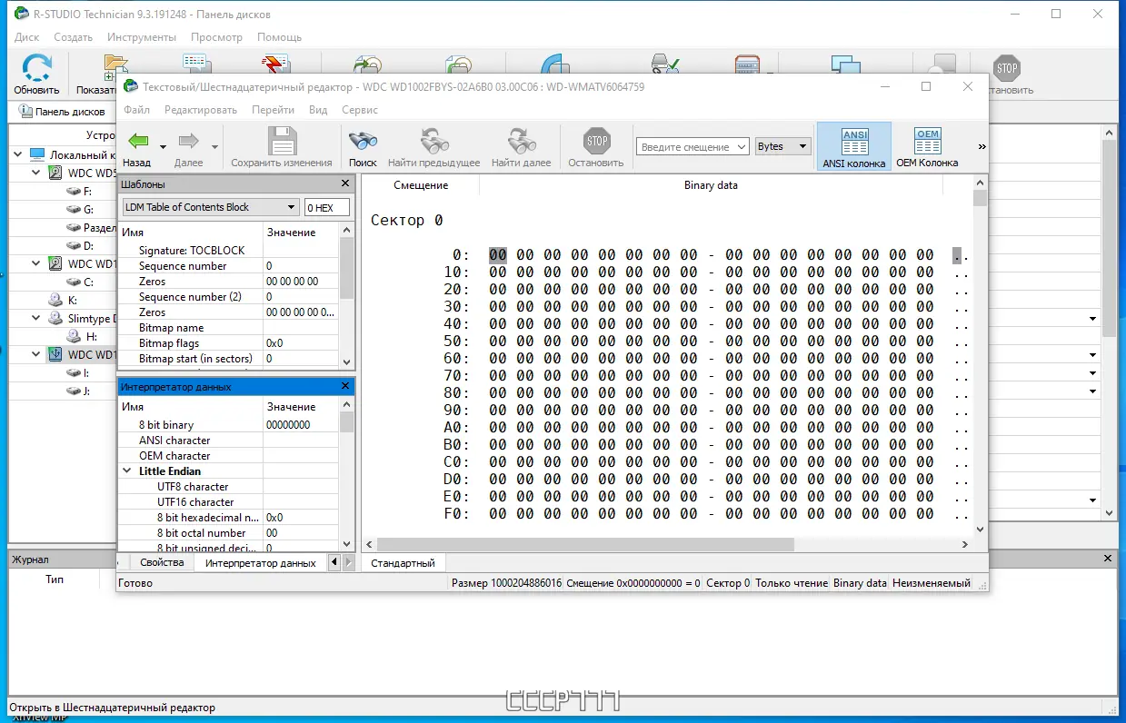 - Встроенный шестнадцатеричный редактор для детального просмотра и коррекции данных
