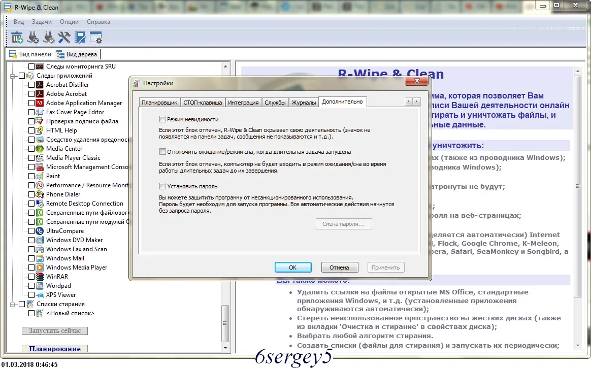 - Наличие планировщика задач, работающего в фоне, с возможностью завершения сеанса после выполнения операции.