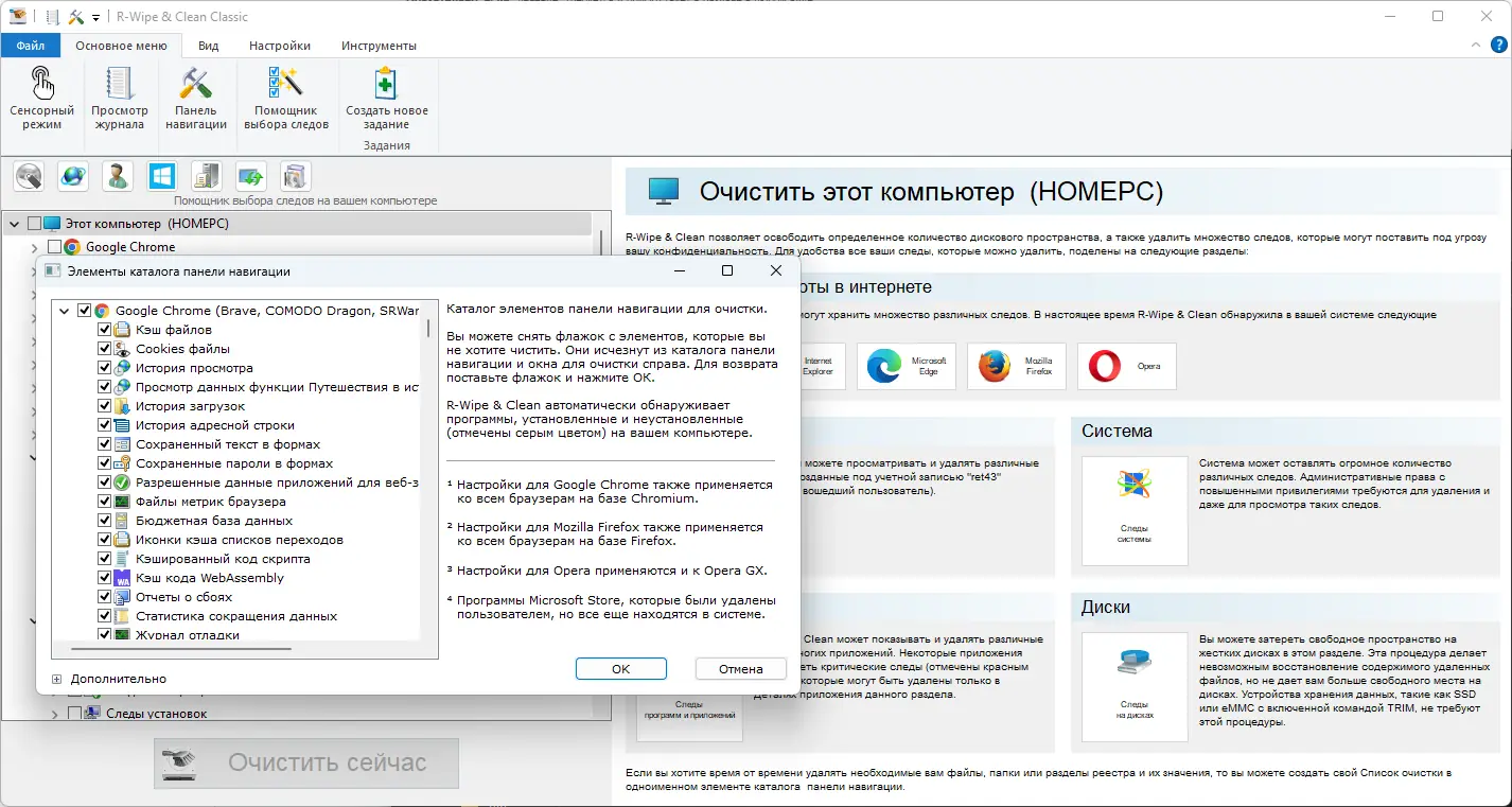 R-Wipe & Clean — это мощная утилита для комплексной очистки системы от временных, кэшированных и следовых данных. Программа предназначена для пользователей, которым важна приватность и безопасность при работе с персональным компьютером. Она удаляет не только видимые файлы, но и скрытые следы активности, включая куки, историю посещений, записи в MFT, данные в файле подкачки и временные файлы различных приложений.
