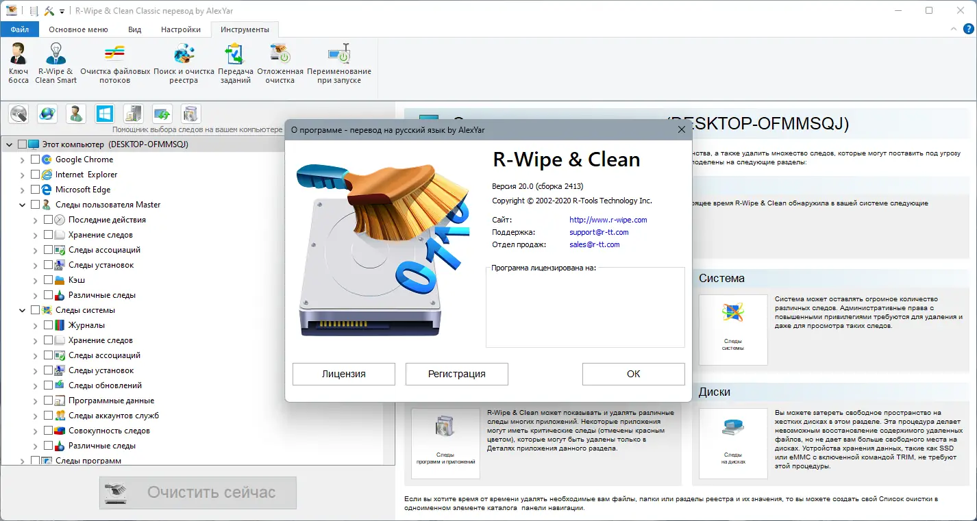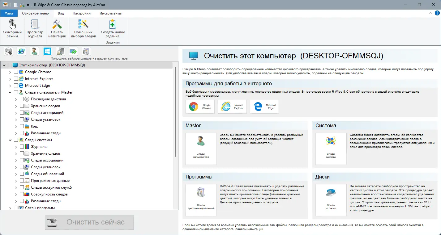 R-Wipe & Clean — это мощная утилита для полного и безопасного удаления данных с жёстких дисков и других носителей. Программа обеспечивает невосстановимое стирание следов пользовательской активности, временных файлов, кэша, журналов и других данных, которые могут содержать конфиденциальную информацию. Подходит для тех, кто заботится о приватности и безопасности при использовании персонального компьютера.