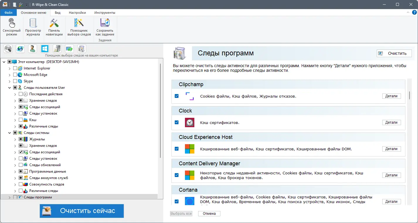 - Автоматическое определение установленных приложений для очистки их временных файлов и записей в реестре
