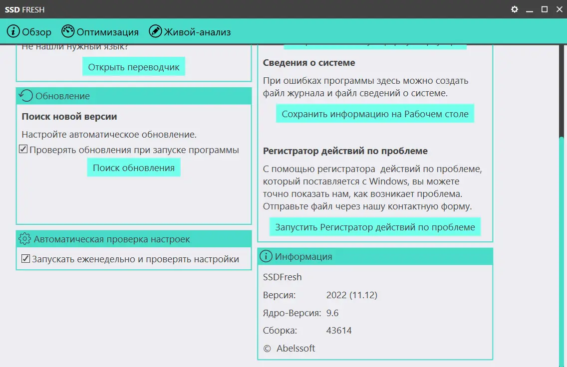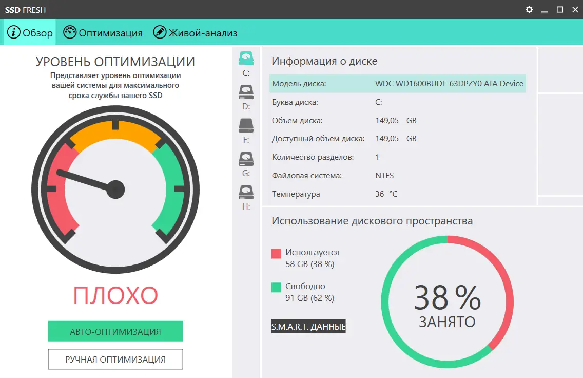 Оптимизация через Abelssoft SSD Fresh помогает сохранить высокую производительность диска на протяжении всего срока его эксплуатации.
