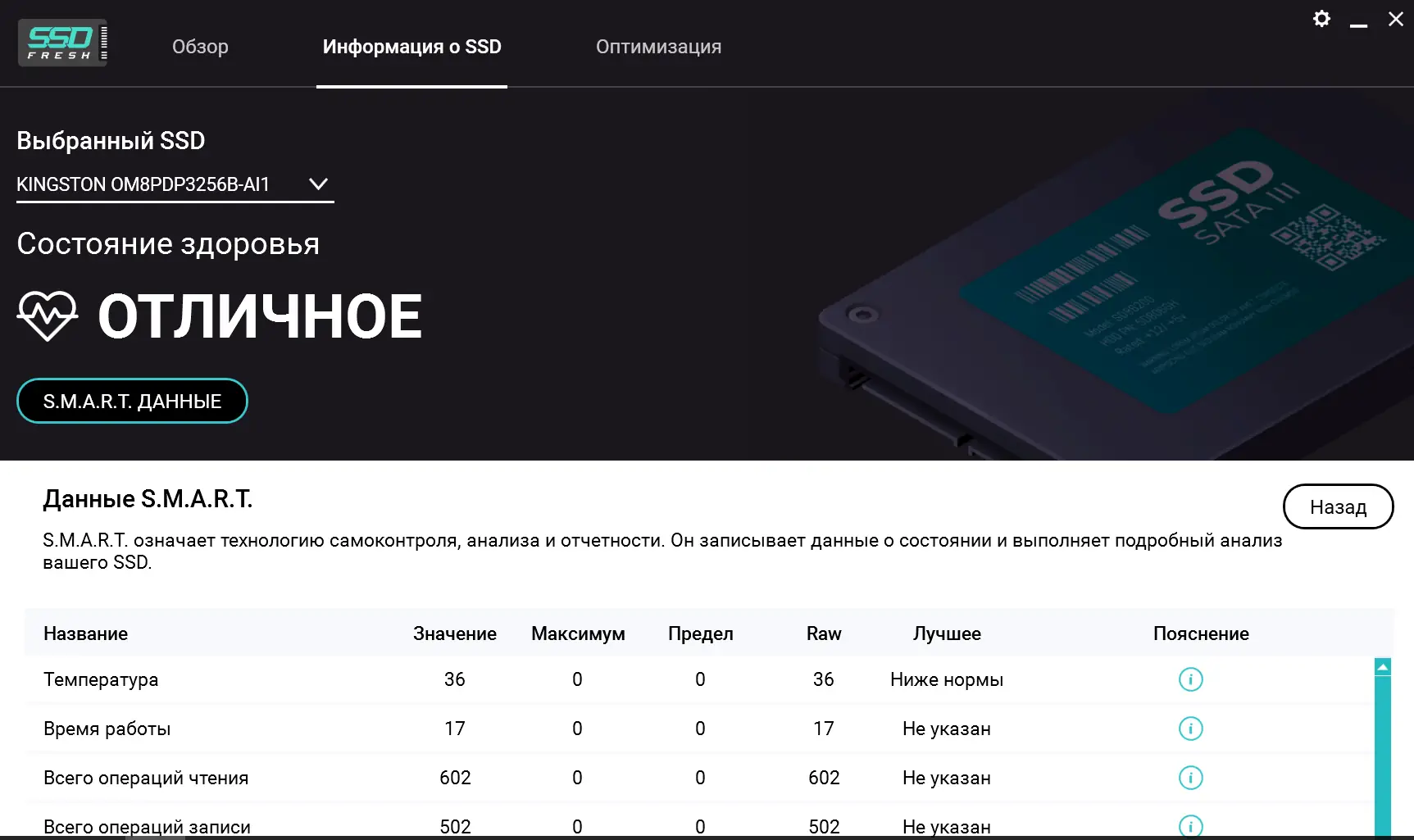 - Поддержка мониторинга S.M.A.R.T. и детальной диагностики состояния SSD.