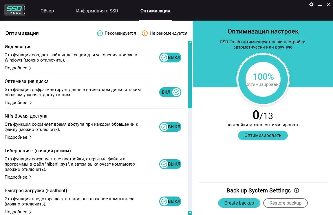 Программа эффективно увеличивает ресурс SSD, отключая системные функции, не несущие полезной нагрузки на твердотельных накопителях
