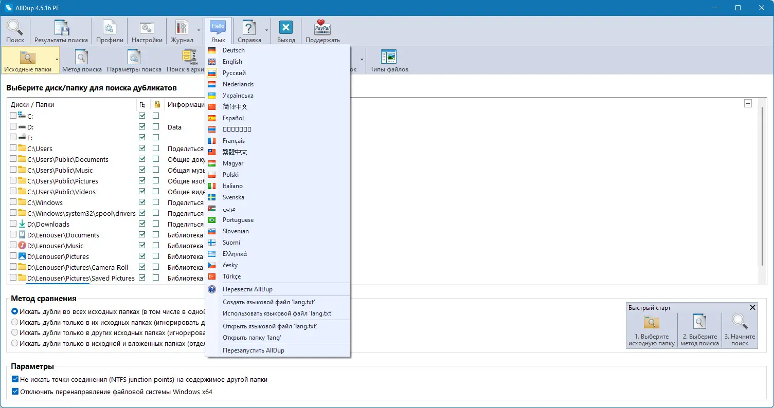AllDup сочетает в себе производительность, гибкость и надёжность, что делает его одним из лидеров в категории утилит для очистки дисков. Программа поддерживает сложные сценарии поиска, включая игнорирование ID3-тегов в MP3, что критично при работе с музыкальными коллекциями. Возможность настройки правил фильтрации и исключения делает процесс точным и адаптированным под нужды пользователя. Однако, несмотря на широкие возможности, интерфейс может показаться перегруженным новичкам. Тем не менее, при минимальном освоении все функции становятся доступными и понятными.