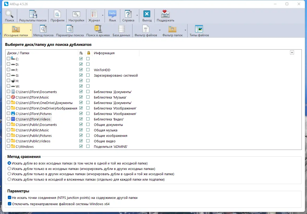 AllDup — это бесплатное программное обеспечение для поиска дубликатов файлов, позволяющее эффективно освобождать место на жёстком диске. Программа анализирует данные по множеству параметров, включая содержимое, имя, размер и дату создания файлов. Она поддерживает все типы файлов и предлагает гибкие настройки для точного поиска ненужных копий.