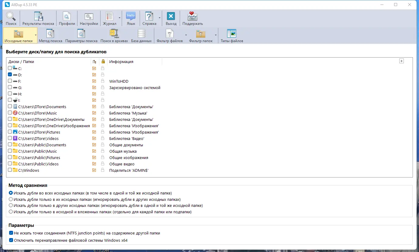 - Поддержка множества критериев для поиска дубликатов, включая сравнение содержимого файлов.