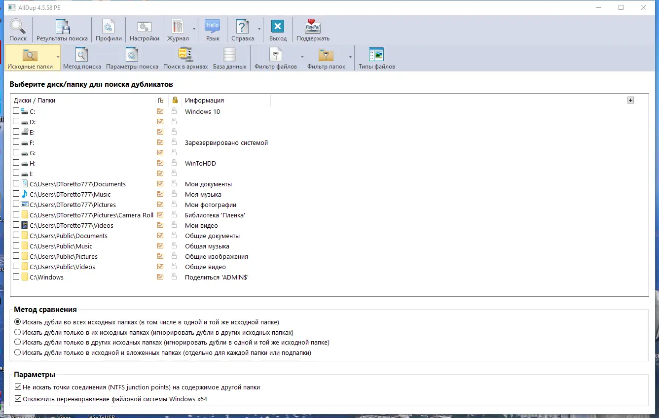 AllDup — это бесплатное приложение для поиска дубликатов, позволяющее эффективно очистить жёсткий диск от повторяющихся файлов. Программа анализирует данные по множеству параметров и помогает освободить место, находя копии документов, изображений, музыки и видео. С её помощью можно быстро определить и как удалить дубликаты, не затрагивая оригиналы.