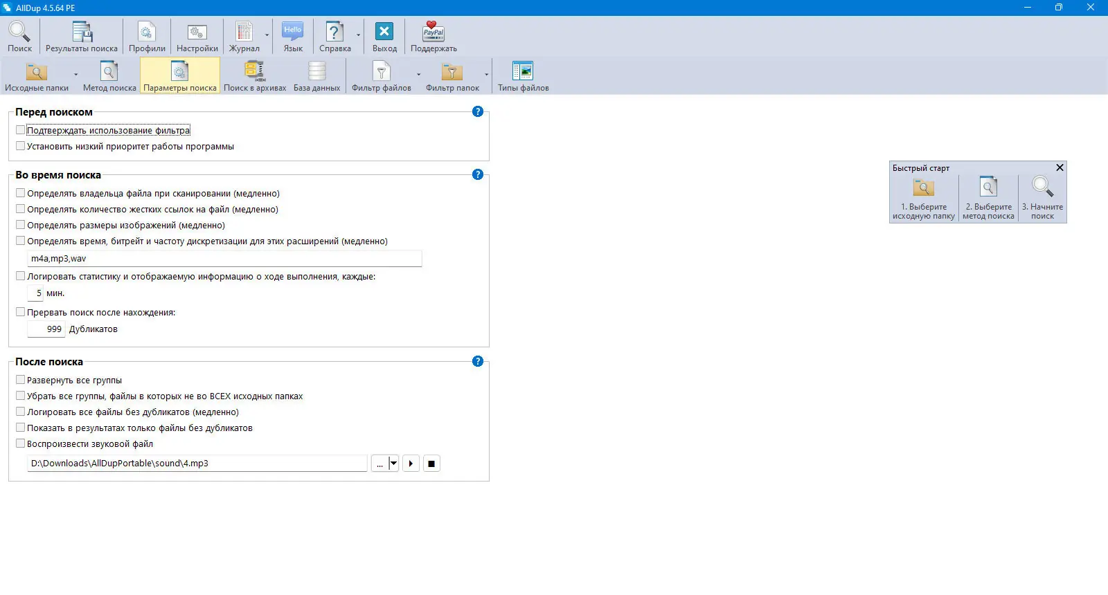 Чтобы начать использовать AllDup, достаточно указать папки или диски, которые необходимо просканировать. Далее выбираются критерии поиска дубликатов, например, сравнение по имени, размеру или хеш-сумме содержимого. Для медиафайлов предусмотрена опция игнорирования ID3-тегов, что позволяет находить одинаковые треки с разными метаданными. После завершения анализа программа отображает список найденных дубликатов с возможностью предварительного просмотра. Пользователь может вручную выбрать, какие копии следует оставить, а какие — удалить, переместить или скопировать. Результаты поиска можно сохранить и продолжить работу позже, что удобно при анализе больших массивов данных. Процесс управления дубликатами остаётся прозрачным благодаря детальному логированию всех действий. Понятный интерфейс и логичная структура меню упрощают вопрос о том, как пользоваться программой, даже новичку.