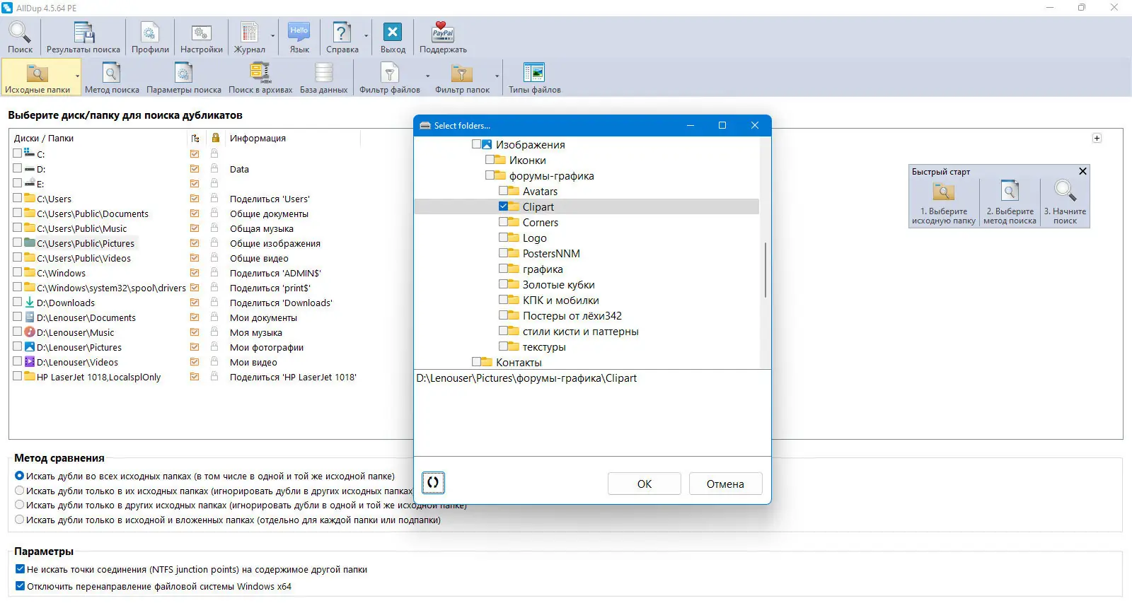 AllDup — это бесплатное приложение для поиска дубликатов файлов, помогающее эффективно освободить место на жёстком диске. Программа анализирует содержимое, имя, размер, дату изменения и другие параметры, чтобы точно выявить повторяющиеся файлы любого формата. С её помощью можно быстро найти и обработать дубликаты, включая музыку, фото, видео и документы, обеспечивая системе больше свободного пространства и порядок в хранилище данных.