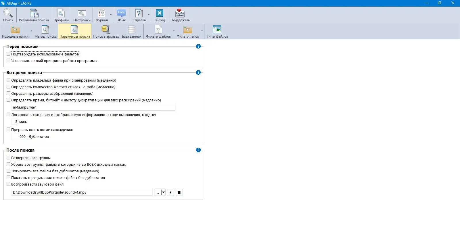 - Возможность игнорировать ID3-теги при анализе музыкальных файлов для более точного сравнения аудиоданных.