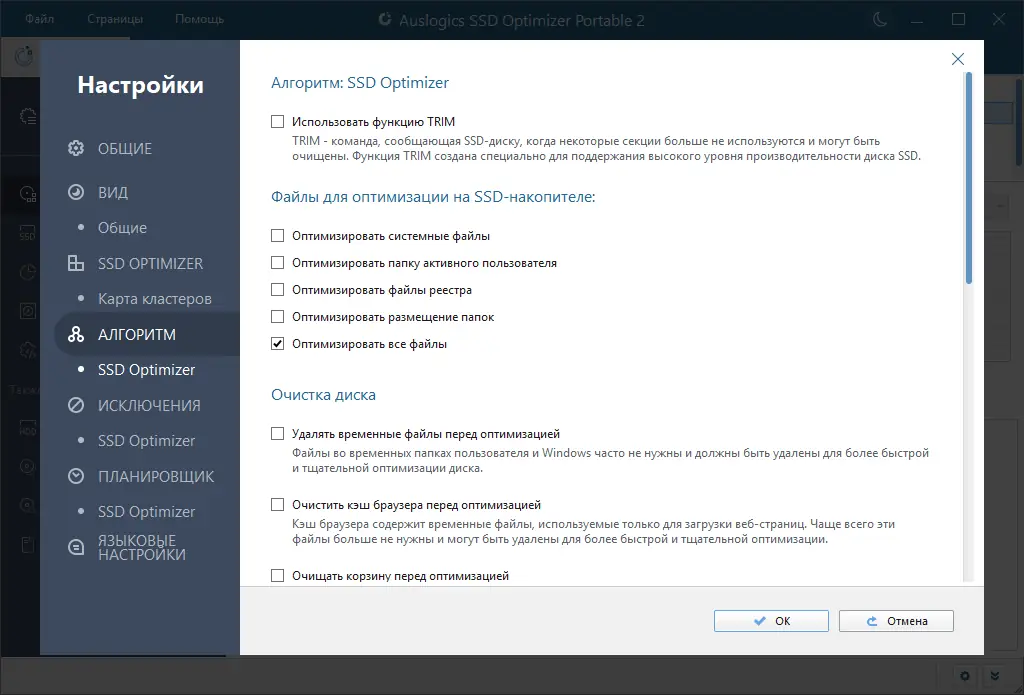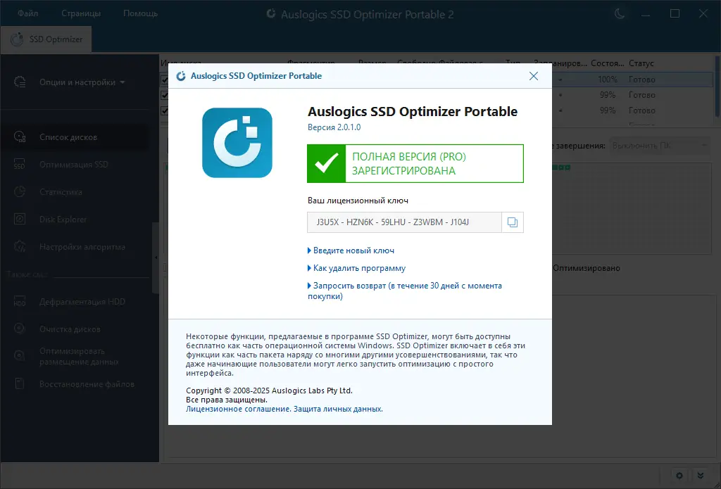 Программа Auslogics SSD Optimizer предназначена для комплексной оптимизации твердотельных накопителей, улучшения их производительности и продления срока службы. Она автоматизирует процессы обслуживания SSD, включая очистку, дефрагментацию файлов и настройку системных параметров.