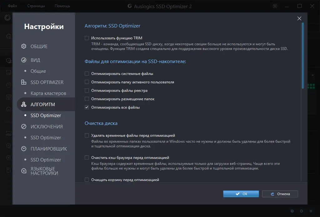 - Быстрая очистка системы перед оптимизацией для минимизации нагрузки на SSD во время процесса.