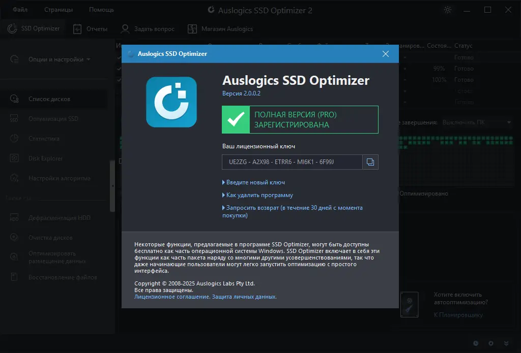 Auslogics SSD Optimizer — это специализированное программное обеспечение, разработанное для повышения эффективности работы твердотельных накопителей. Утилита помогает ускорить систему, продлить срок службы SSD и оптимизировать использование дискового пространства. Программа подходит как для новичков, так и для продвинутых пользователей, заботящихся о производительности своего компьютера.