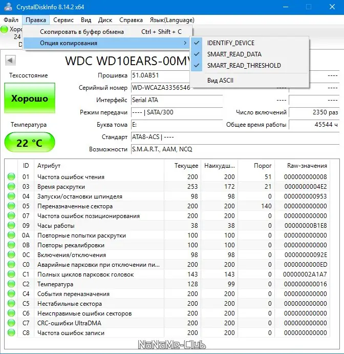 CrystalDiskInfo предоставляет детальную информацию о всех подключённых накопителях, включая интерфейс подключения, объём памяти, версию прошивки и серийный номер. Программа непрерывно отслеживает состояние дисков, используя данные S.M.A.R.T., и выдаёт комплексную оценку их работоспособности. Это особенно важно при эксплуатации старых HDD или активном использовании ssd, где износ может привести к потере файлов.