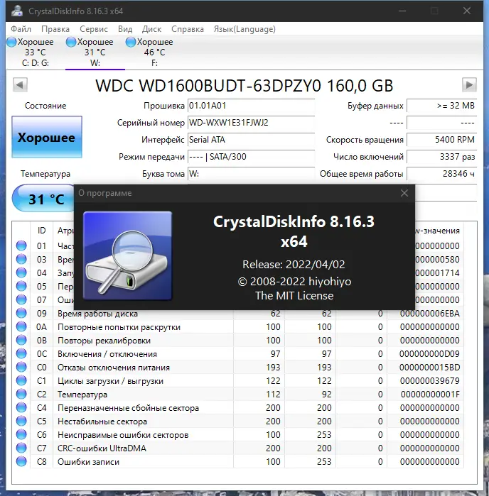 Работа с CrystalDiskInfo