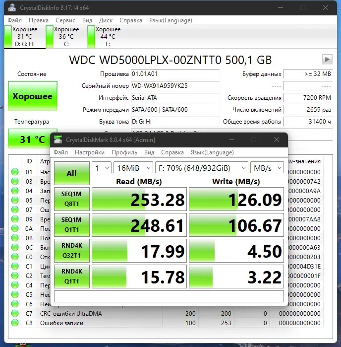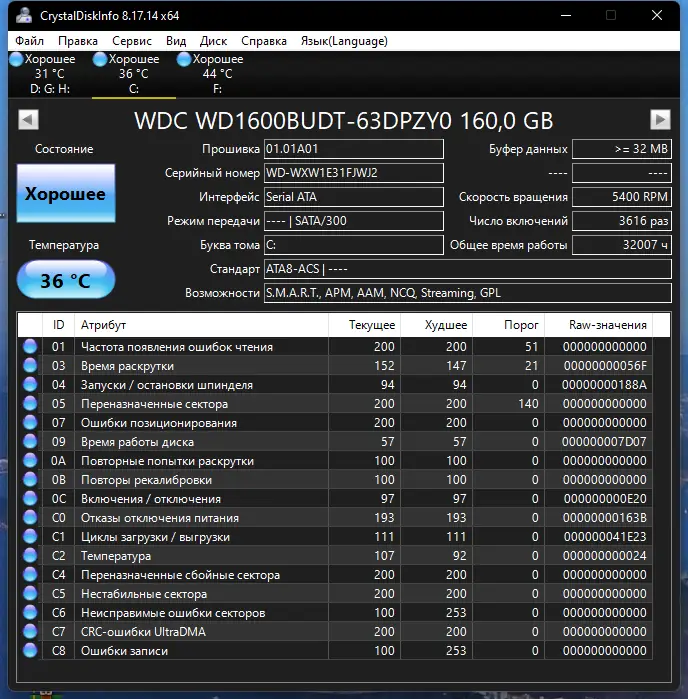 Работа с CrystalDiskInfo