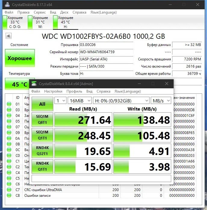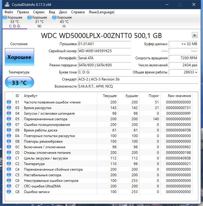 Работа с CrystalDiskInfo