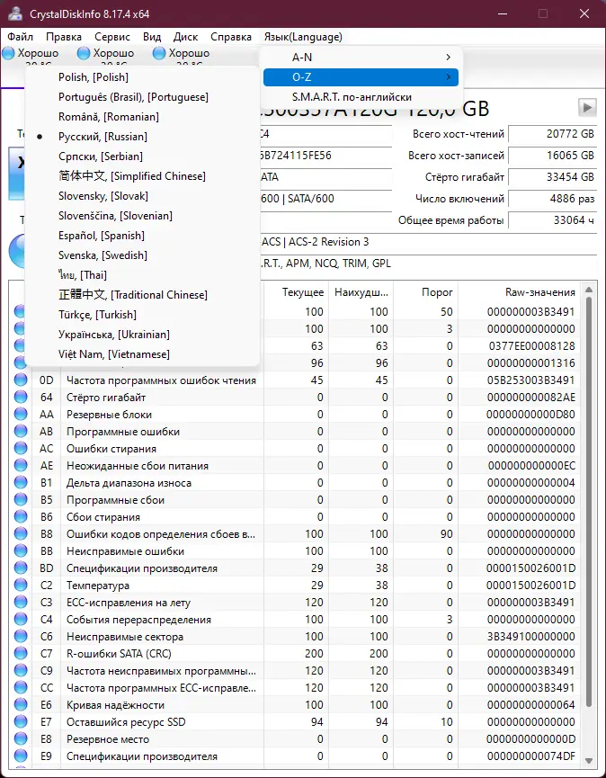 Работа с CrystalDiskInfo