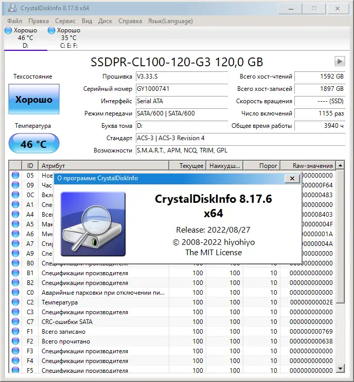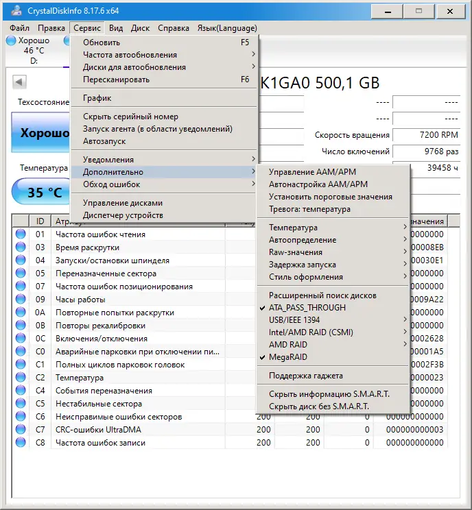 Описание CrystalDiskInfo