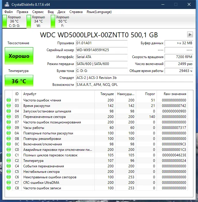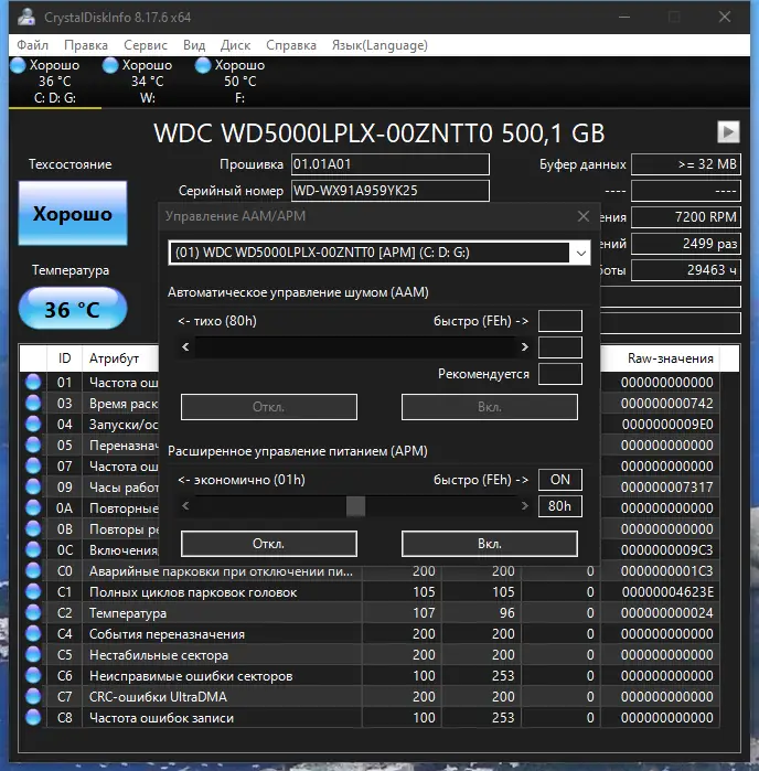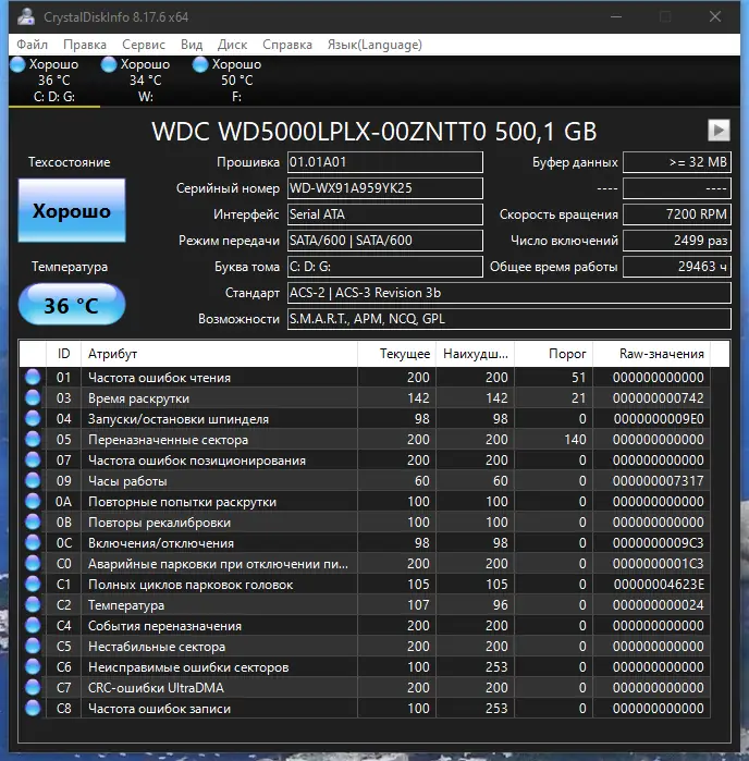 Работа с CrystalDiskInfo
