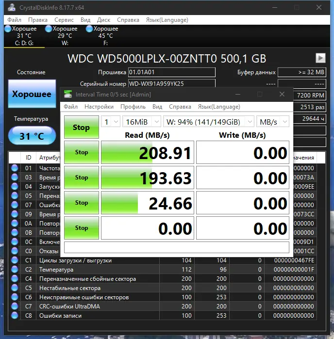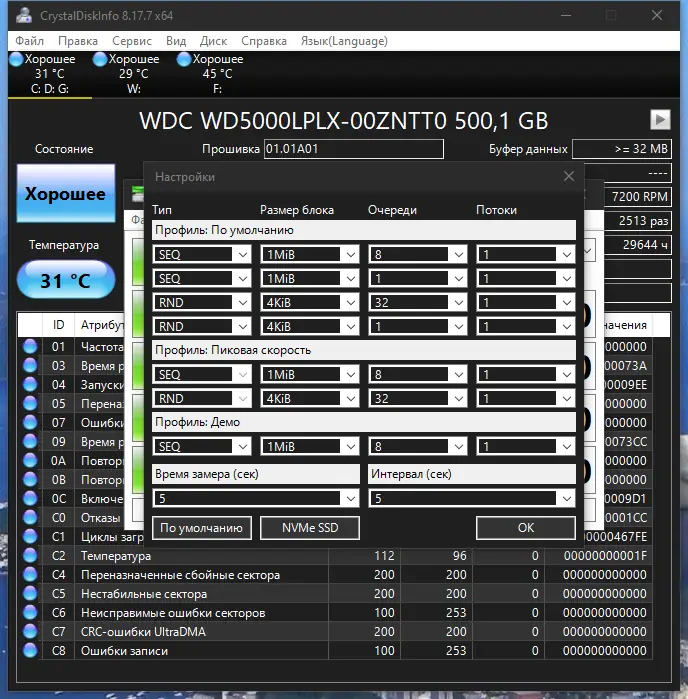 Работа с CrystalDiskInfo